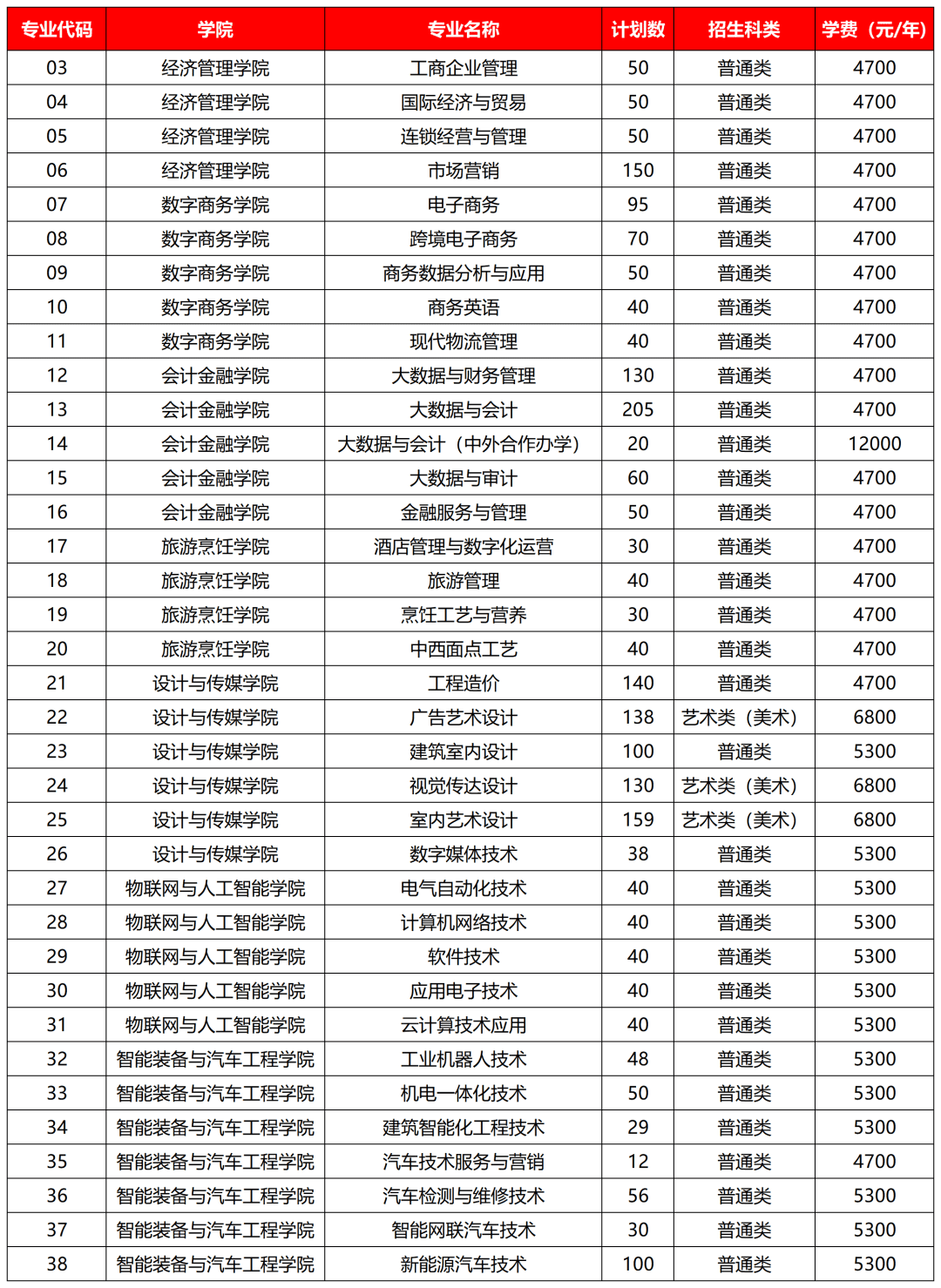 2.大数据与会计专业(中外合作)考生入校后,学校给予6000元/年学费资助。